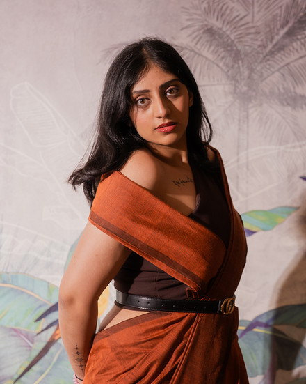 Style Tip:- Pair Amber Dusk with handcrafted silver jewellery, earthy makeup tones, a low bun or braided hair, and tan or brown footwear for an effortlessly graceful look.