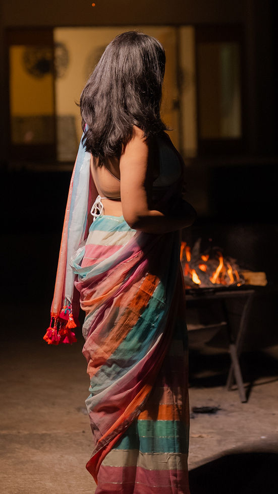 a celebration of soft hues and breezy comfort. Crafted from premium mulmul cotton, this saree is as light as a whisper, perfect for warm days, festive gatherings, casual outings, or a relaxed ethnic look.