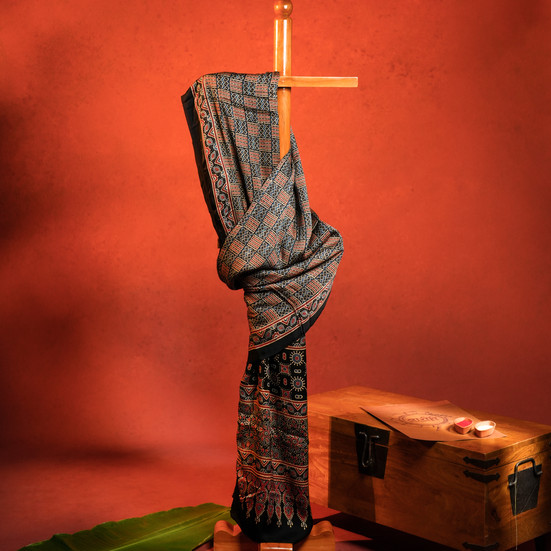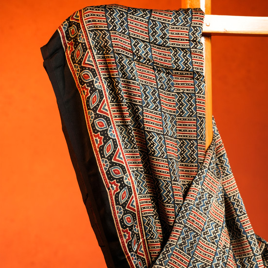 - Colour Palette: Black with indigo & maroon Ajrakh stripe motifs