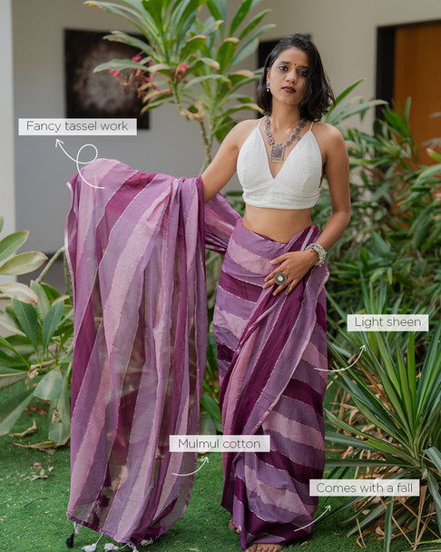 A celebration of colour and comfort, Lilac Riot is a lilac mulmul cotton saree splashed with lively multi-colour accents that bring an unexpected edge to everyday draping. Feather-light and fluid, this saree is made for those who like their classics with a hint of rebellion.