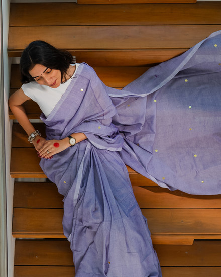 Delicate as moonlight and quietly elegant, Moonlight Mauve is a light lilac Khadi cotton saree that embodies calm sophistication. Hand-spun and thoughtfully crafted, this saree reflects effortless grace with its muted hue and natural texture—perfect for those who love minimalism with soul.