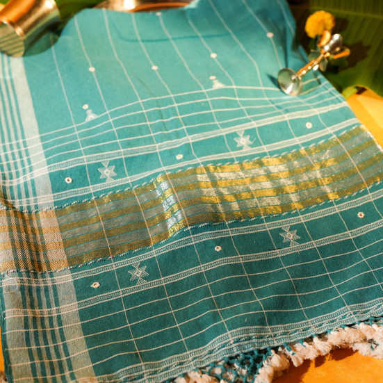 Teal Green Cotton Dupatta with Handwoven Design & Tassels